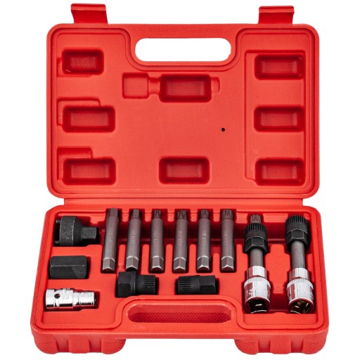 - Klucze umożliwiają jednoczesne odkręcanie śruby mocującej koło pasowe (za pomocą odpowiedniego bitu) oraz przytrzymywanie koła ze sprzęgłem (za pomocą specjalistycznej nasadki).