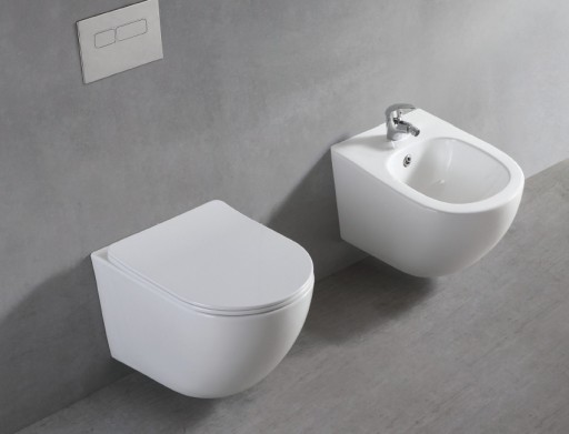 Muszla i bidet VERA wykonane są z ceramiki sanitarnej w białym kolorze. Kształt zestawu pozwala na optymalne wykorzystanie przestrzeni, a innowacyjny systemem spłukiwania zapewnia funkcjonalność. W komplecie deska wolnoopadająca z metalowymi zawiasami, z funkcją szybkiego wypięcia.