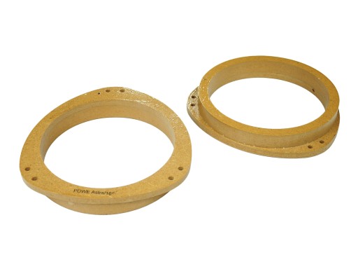 Impregnowane i dwukrotnie lakierowane dystanse głośnikowe wykonane z MDF, przeznaczone do stabilnego montażu głośników w fabrycznych miejscach montażowych samochodu. Jakość i dokładność wykonania zapewnia technologia CNC. Dystanse firmy Powe po frezowaniu są dodatkowo szlifowane, a następnie nanoszone są 3 warstwy zabezpieczające przed wilgocią (jedna warstwa impregnacji i dwie warstwy bezbarwnego lakieru). Szlifowanie powierzchni dystansu po frezowaniu oraz po lakierowaniu pozwala uzyskać szczelną, gładką powłokę ochronną na całej powierzchni, w tym również na linii cięcia, co skutecznie zapobiega wnikaniu wilgoci do wnętrza MDF-u.
