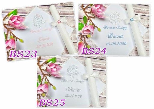 Zmiana koloru haftu w wybranym wzorze nie oznacza zmiany koloru zdobienia (kokardka/ozdoba, świeca pozostają w takich kolorach jak na zdjęciu wybranego wzoru).
