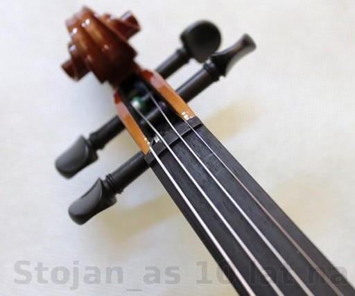 Podstrunnica z drewna hebanowego jest bardzo wytrzymała na ścieranie pod palcami, dzięki czemu skrzypce mogą służyć przez wiele lat.
