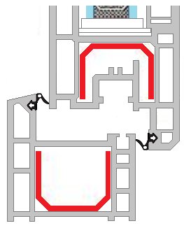1. Profil górny - cześć uszczelki nad czerwoną kreską