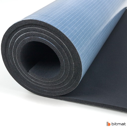 Mata wygłuszająca K13s Bitmat — pianka izolacyjna gumowa o strukturze komórek zamkniętych z warstwą mocnego kleju, posiada wysokie właściwości akustyczne oraz izolacyjne.