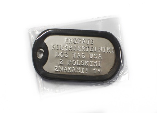 Tylko na naszych aukcjach wojskowe nieśmiertelniki Dog Tag US Army wykonane z oryginalnych komponentów i wybijane na oryginalnej maszynie. Każdą blaszkę wybijamy na autentycznej maszynie wykorzystywanej przez amerykańską armię (maszyna została specjalnie dla nas dostosowana pod wybijanie polskich znaków - kupując u nasz masz pewność, że otrzymasz indywidualny, polski nieśmiertelnik wybijany tak, jak wybija się współczesne wojskowe nieśmiertelniki w USA - jesteśmy jedynymi posiadaczami oryginalnej maszyny US Army z polskimi znakami diakrytycznymi w Polsce).
