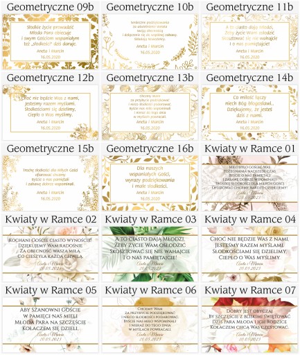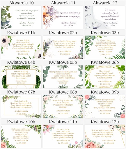 Wszystkie wierszyki znajdziesz w formularzu specyfikacji który musisz wypełnić na stronie www. Link do formularza poniżej, wklej go do swojej przeglądarki internetowej i wypełnij po zakupie etykiet :