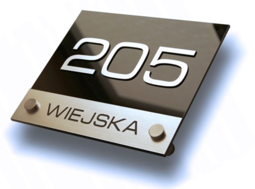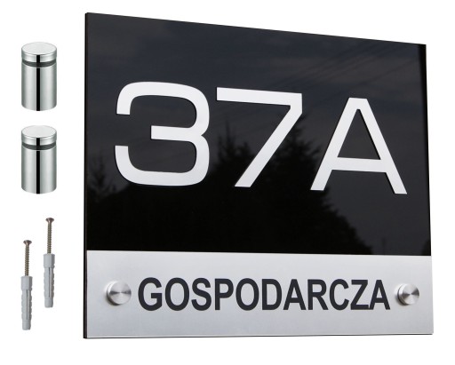 NUMER DOMU z mocowaniem. W podanej cenie otrzymujesz tabliczkę z nazwą ulicy i numerem domu, solidne dystanse ze stali nierdzewnej, kołki oraz wkręty.