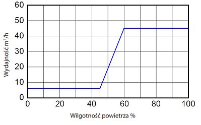 - Nawiew powietrza proporcjonalny do wilgotności względnej wewnątrz pomieszczenia