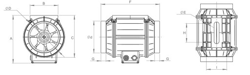 Urządzenie składa się z trzech głównych elementów: płyty montażowej, zespołu silniko-wirnika ze zintegrowaną puszką podłączeniową, oraz króćców przyłączeniowych. Całość połączono za pomocą dwóch uchylnych klamer.