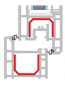 W starszych oknach można spotkać się z montażem uszczelki na narożach na tzw. "owijkę", czyli uszczelka na narożu nie jest przycinana pod kątem 45 stopni i trwale łączona ze sobą , tylko zgięta jest pod kątem 90 stopni i wciśnięta w rowek montażowy. W starszych oknach był to prawidłowy montaż uszczelki. W nowych oknach uszczelki na narożach przycina się pod kątem 45 stopni i trwale ze sobą łączy ( do tego celu używamy kleju Faster ). Nowy sposób montażu wprowadzono w celu lepszego uszczelnienia okna na narożach, ponieważ montując na narożu okna zgiętą uszczelkę ( stary sposób montażu) powoduje to jej zgrubienie ( uszczelka traci swoją elastyczność) i szybko w tym miejscu okno zaczyna przewiewać. Drugim minusem starego sposobu montażu jest to, że zgięta pod kątem 90 stopni uszczelka nie trzyma się dobrze w rowku montażowym i często z niego wypada powodując rozszczelnienie okno.