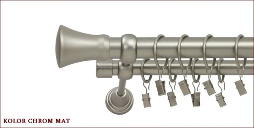 Wszystkie elementy wykonane są z metalu, pokryte powłoką galwaniczną i warstwą utwardzonego lakieru, tak aby maksymalnie zabezpieczyć karnisz przed zarysowaniami i utratą koloru.