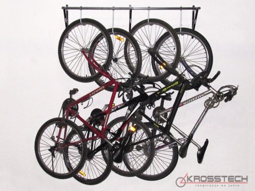 - zastosowane dwie różne długości haków pozwalają na osadzanie rowerów na różnych wysokościach, a tym samym zapobiegnięciu bezpośredniego kontaktu pomiędzy nimi.
