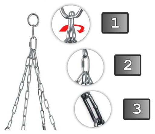 1. Zawieszenie na okrętce - zabezpiecza przed skręcaniem się łańcuchów podczas treningu