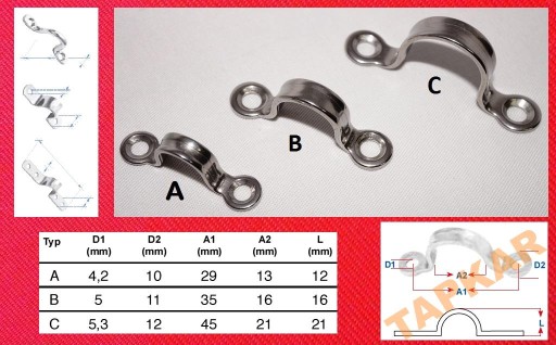 Wszystkie dostępne rozmiary oraz wymiary przelotki przedstawione są w tabeli i na zdjęciu.