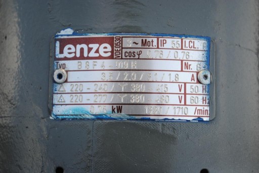 Motoreduktor jest po sprawdzeniu, gotowy do pracy. Silnik 3-fazowy.