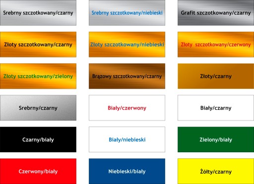Kolory tabliczek: