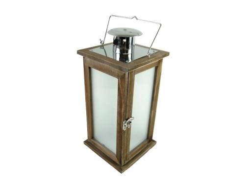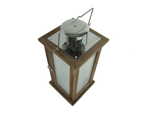 Przedstawiamy Państwu świecącą, drewnianą latarnię LED z metalowym daszkiem. Drewno jest w kolorze brązowym. Latarnia posiada uchwyt ułatwiający jej przenoszenie lub zawieszenie. Lampion otwierany jest od frontu a boki lampionu są przeszklone.