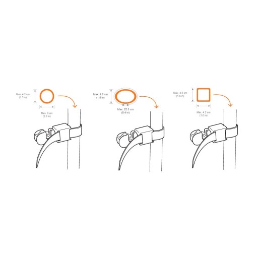 Złącza są dopasowane do kwadratowych, owalnych lub okrągłych rurek stelażowych wózka o maksymalnym obwodzie 22,5 cm (9 ").