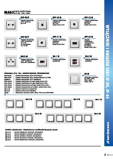 Ramki, wyłączniki (pojedyncze, podwójne, schodowe itp.) oraz gniazda ( antenowe, głośnikowe, podwójne z uziemieniem itp.) w różnych kolorach dostępne są na naszych pozostałych aukcjach.