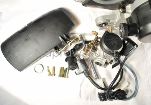 Gaźnik (CVK lub Keihin), cewka zapłonowa z przewodem WN oraz fajką, daszek tylnego koła, nakrętki tłumika oraz uszczelka. Ponadto w silniku zamontowany jest iskrownik z kołem magnesowym, rozrusznik oraz świeca, tuleje metalowo gumowe, osłony plastkowe, kopniak rozrusznika, odma, króciec ssący.