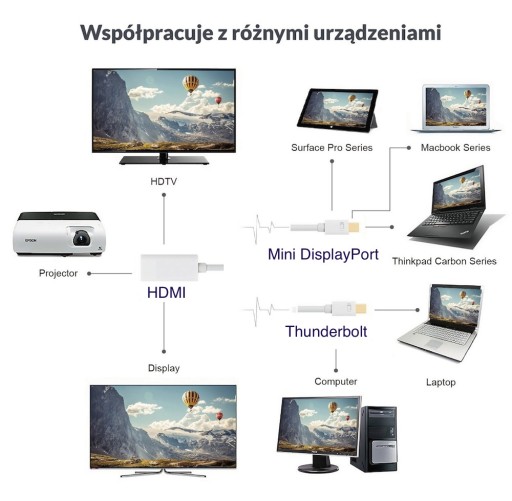 do portu Mini Display Port / Thunderbolt w komputerach Mac i PC.