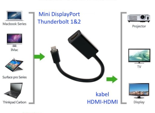• w komputerze : wolne żeńskie gniazdo Mini Displayport lub Thunderbolt / Thunderbolt 2