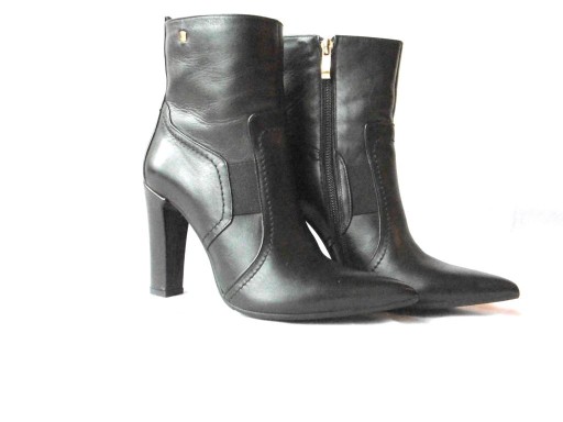 Zgrabne botki firmy Baldowski. Całość opiera się na obcasie o wysokości 9,5 cm. Przyjemnie układająca się na stopie cholewka to skóra naturalna - licowa. Wewnętrzna wyściółka to ocieplenie filcowe. Komfort noszenia podnosi wkładka: filc. Podeszwa izolująca, to wysokogatunkowe tworzywo. Idealne na chłodniejsze dni. cholewka: skóra naturalna podeszwa: czarna całkowita wysokość buta: 23cm Rozmiar 36 wkładka 23,5 stopa max 23 . Rozmiar 37 wkładka 24 stopa max 23,5 Rozmiar 38 wkładka 24,5 stopa max 24 Rozmiar 39 wkładka 25 stopa max 24,5 Rozmiar 40 wkładka 25,5 stopa max 25 z