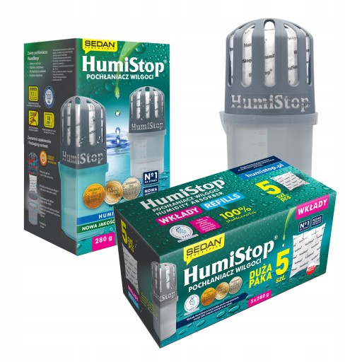 Najwyższej jakości pochłaniacz wilgoci "HUMISTOP" kontroluje i samodzielnie reguluje nadmiar wilgoci w pomieszczeniach.