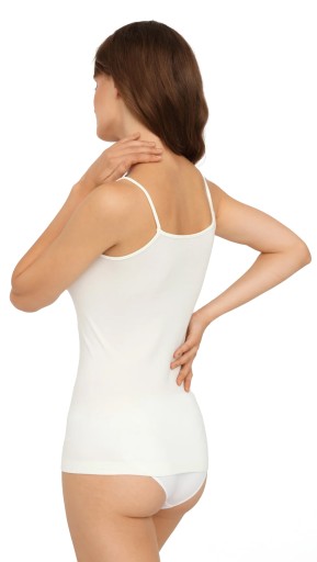 Klasyczna, ponadczasowa bluzka Camisole na cienkich ramiączkach to gwarancja wyjątkowej wygody i perfekcyjnego wyglądu. Minimalistyczna, skromna kobieca podkoszulka posiada piękny, prosty dekolt starannie wykończony, dzięki czemu wygląda zawsze estetycznie i elegancko.