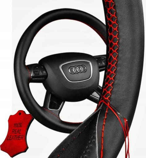 ✅ Pokrowiec ze skóry naturalnej przeznaczony do samochodów osobowych (obwód kierownicy poniżej 135 cm, grubość maksymalnie do 13 cm).