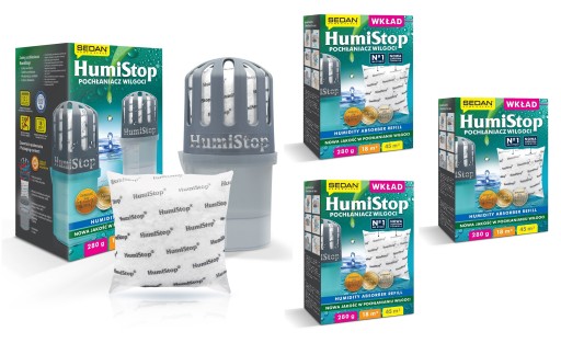 Najwyższej jakości pochłaniacz wilgoci "HUMISTOP" kontroluje i samodzielnie reguluje nadmiar wilgoci w pomieszczeniach.