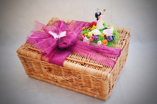 Kosz ma wymiary 40x30x18cm. Jest bardzo dobrze wykonany -porządny i praktyczny - może służyć do przechowywania np. pamiątek rodzinnych, kartek ślubnych, itp. Nasze wykwalifikowane florystki wykonają wybraną przez Państwa dekorację okolicznościową z wysokiej jakości dodatków florystycznych i sztucznych kwiatów, które doskonale imitują żywe.