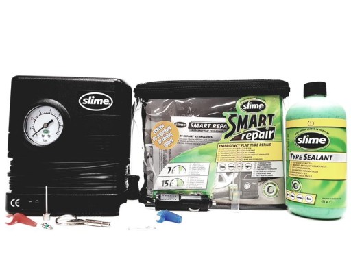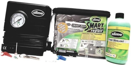 Każdy zestaw zawiera wysokiej jakości uszczelniacz Slime oraz kompresor 12 V o różnej mocy.