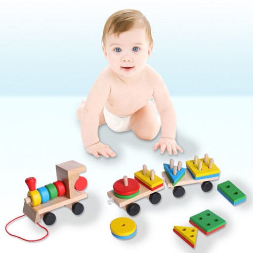 POCIĄG DREWNIANY WAGONIKI + KLOCKI