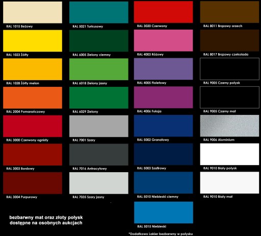 KOLOR ZŁOTY I BEZBARWNY MAT DOSTĘPNE NA OSOBNEJ AUKCJI