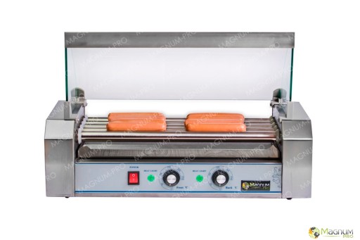Rolkowy podgrzewacz to urządzenie gastronomiczne służące do podgrzewania różnego rodzaju kiełbasek, parówek itp. Idealnie sprawdza się w barach, stacjach benzynowych, pubach, sklepach z kącikiem gastronomicznym. Urządzenie od odpowiedniej temperatury nagrzewa się około 5 minut, a średni czas przygotowania parówki to 3-5min. Naraz na podgrzewaczu może leżeć 8 parówek.