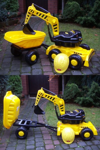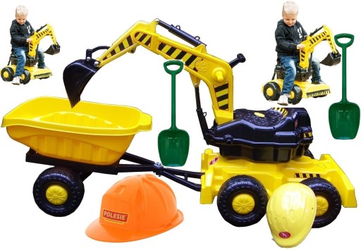 DZIECKO MOŻE STEROWAĆ RUCHOMĄ ŁYŻKĄ KOPARKI, OBRACAĆ SIĘ NA OBROTOWYM SIEDZISKU NAWET O 360 STOPNI, ORAZ PORUSZAĆ CAŁYM ZESTAWEM DO PRZODU I DO TYŁU ODPYCHAJĄC SIĘ NOGAMI !
