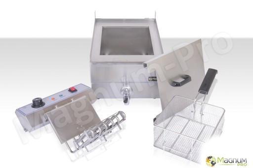 Frytkownica 10 litrowa idealnie nadaje się do smażenia frytek w punktach gastronomicznych. Praca z tym urządzeniem jest bardzo prosta i wygodna. Wystarczy zalać urządzenie olejem, włączyć urządzenie i ustawić wybraną przez nas temperaturę. Gdy olej osiągnie odpowiednią temperaturę frytkownica będzie ją utrzymywać za pomocą termostatu, a nam pozostaje wsadzenie koszyczka z surowymi frytkami.
