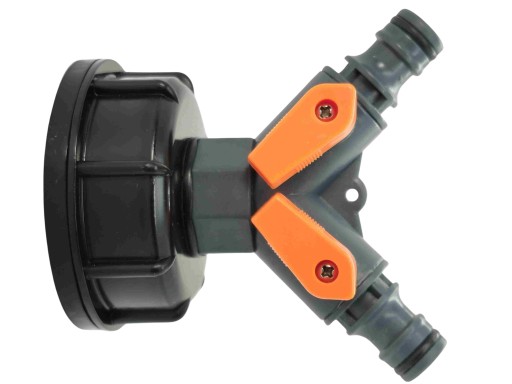 - Rozdzielacz plastikowy z dwoma wyjściami pasującymi na większości końcówek węży ogrodowych.