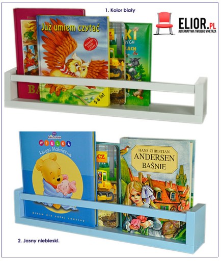 - Półka dostępna jest w kolorach: biały, ciemny orzech, buk jasny, olcha, wenge, czarny, dąb sonoma, popiel, jasny zielony, ciemny niebieski, jasny niebieski, delikatny różowy.