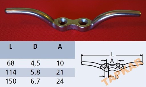 Dokładne wymiary oraz dostępne rozmiary knag przedstawione są w tabeli na zdjęciu.