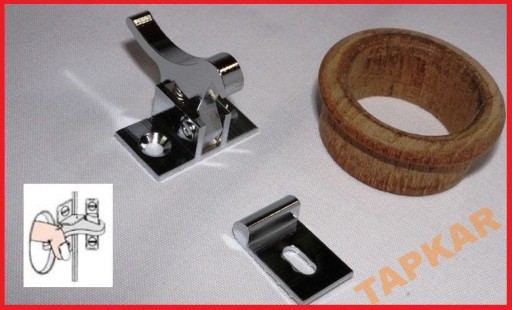 Kogucik z mosiądzu chromowanego oraz pierścień z drzewa tekowego.