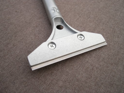 - skrobak wykonany jest z metalowej rurki pokrytej powłoką antykorozyjną z gumową, wygodną rękojeścią oraz zakutym mechanicznie aluminiowym uchwytem do wymiennego ostrza