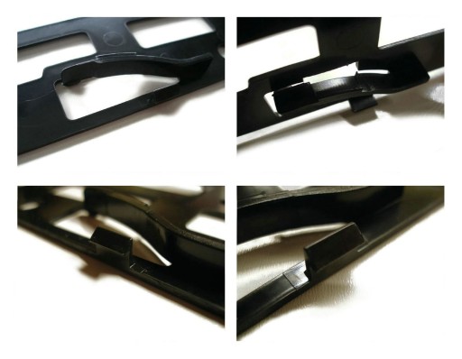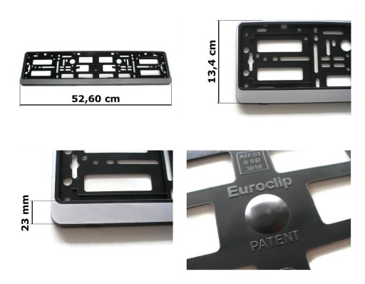 - stelaż ramki posiada samo-regulatory umożliwiające bardzo dobre mocowanie tablic rejestracyjnych o różnych wysokościach (108mm-117mm)