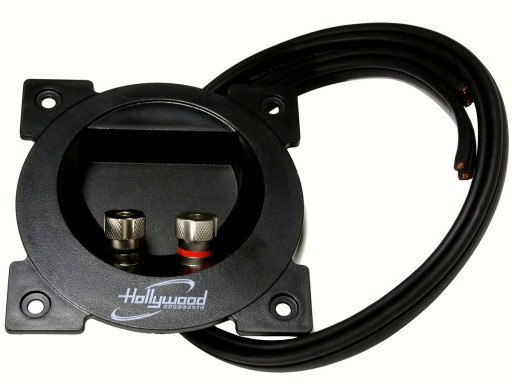 gniazdo głośnikowe do montażu w obudowie subwoofera z 2 przewodami głośnikowymi OFC Hollywood PRO SC12 o długości 2x60cm