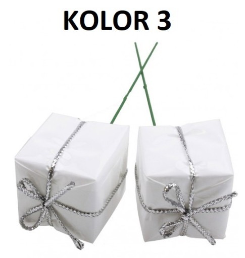 Wymiary jednego prezencika: 2,5 x 2,5 cm, długość z drucikiem 13 cm.