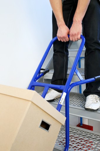 Wózek o konstrukcji umożliwiającej transport towaru po schodach. Specjalne ślizgacze oraz wygodne uchwyty sprawiają, że schody są łatwe do pokonania.