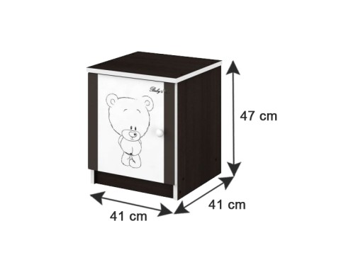 - Wymiary szafki nocnej to 47 x 41 x 41 cm