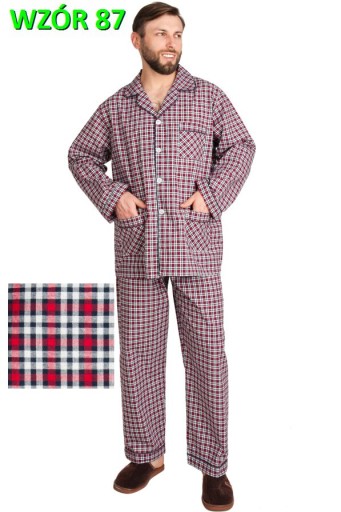 PIŻAMY MĘSKIEJ BAWEŁNIANEJ TKANEJ ROZPINANEJ