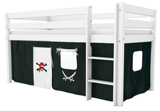 ✅ Czarna zasłona ma piracką dekorację z czaszki na drzwiach, prowadzących do łóżka. Obok znajduje się okienko, które w dowolnej chwili można zasunąć. Dekorację można dopasować do podobnych elementów, jak tunel na górną część oraz wieża piracka.