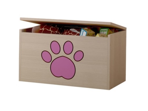 Nadruk na froncie wykonany jest z ekologicznych farb w pełni bezpiecznych dla dziecka, dodatkowo zabezpieczony specjalnym laminatem, tak aby nie uległ wyblaknięciu lub ścieraniu, można go bez obaw myć ściereczką i płynem. Pojemnik posiada przestrzeń pomiędzy frontem a górną pokrywą, tak żeby chronić małe paluszki przed przytrzaśnięciem.